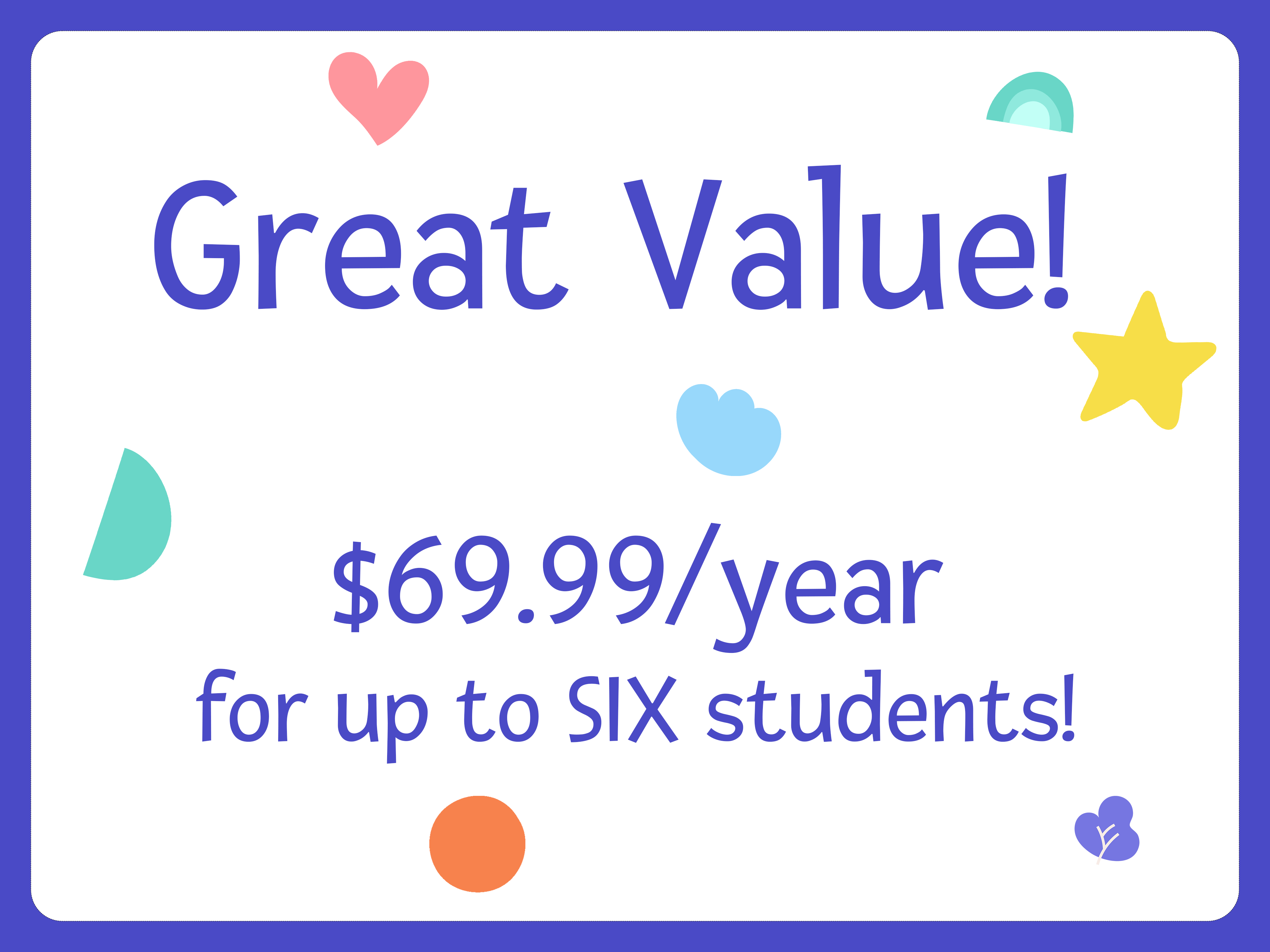 ✨ Great Value! $69.99 / year for up to SIX students